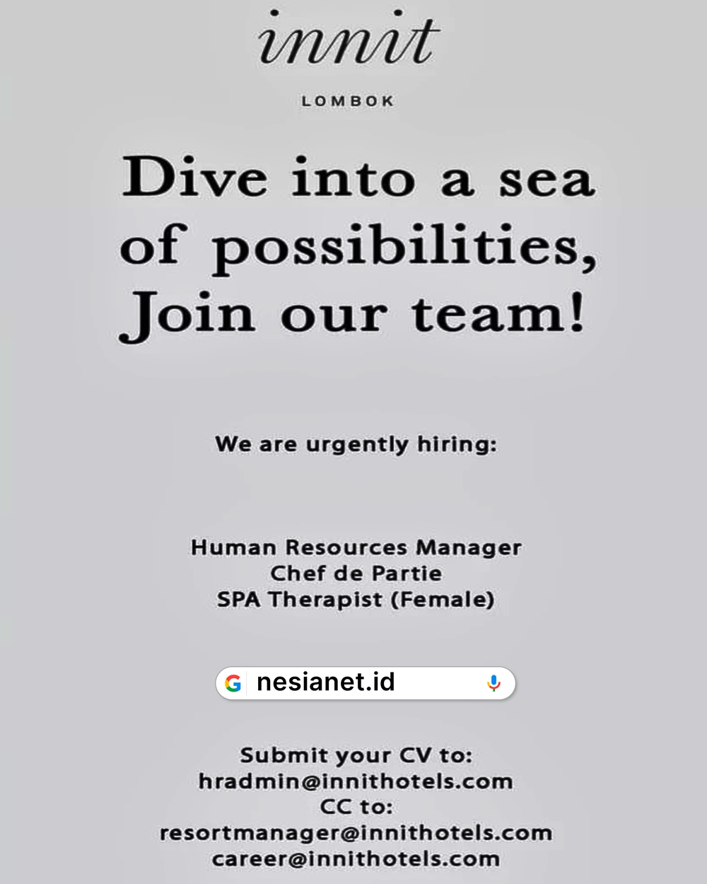 🌟 Lowongan Kerja Human Resources Manager di Innit Hotel Ekas Buana Jerowaru Lombok Timur NTB 🌟