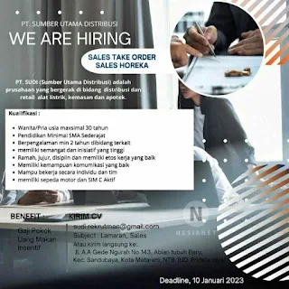 Lowongan Kerja Sales di PT Sumber Utama Distribusi Sandubaya Mataram Lombok NTB - NesiaNet