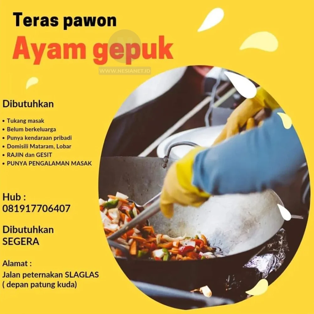 Lowongan Kerja Tukang Masak di Teras Pawon Selagalas Mataram Lombok NTB - NesiaNet
