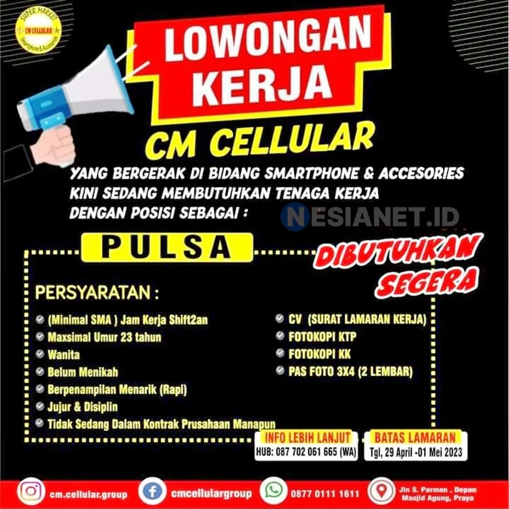 YANG BERGERAK DI BIDANG SMARTPHONE & ACCESORIES KINI SEDANG MEMBUTUHKAN TENAGA KERJA DENGAN POSISI SEBAGAI :