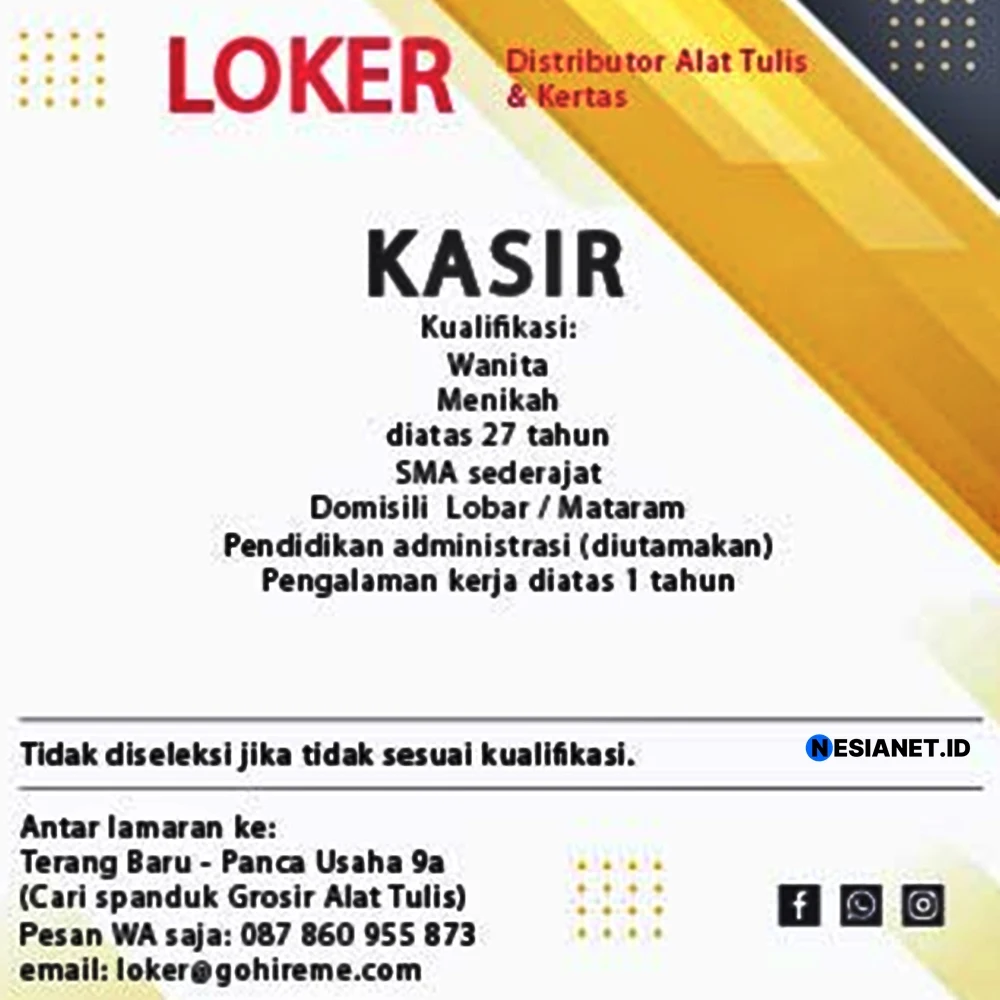 🖊️ Posisi: Kasir Distributor Alat Tulis