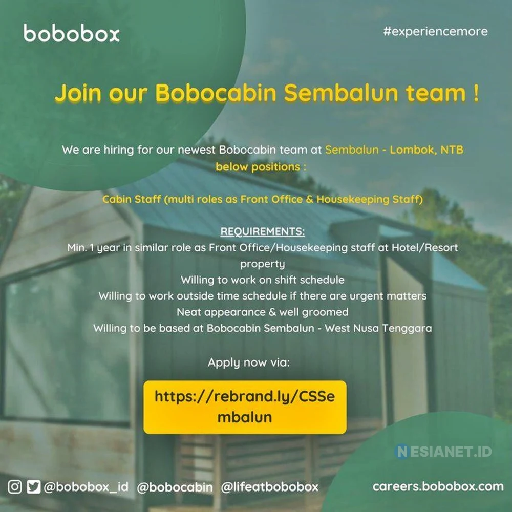 We are hiring for our newest Bobocabin team at Sembalun - Lombok, NTB