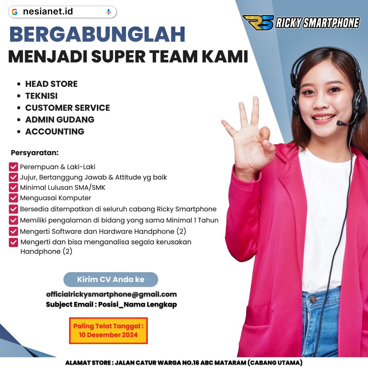 🌍 Bersedia ditempatkan di seluruh cabang Ricky Smartphone