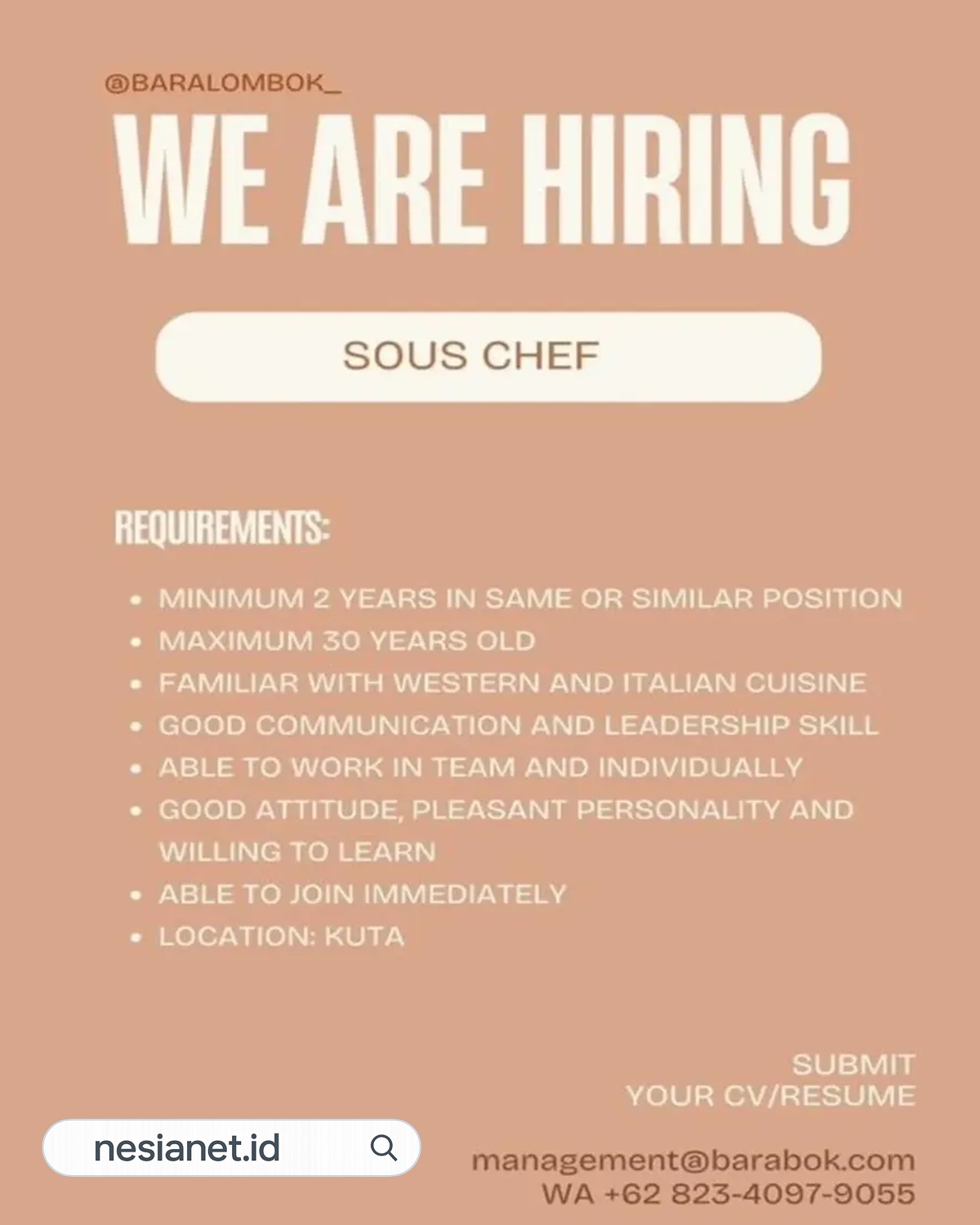 • GOOD ATTITUDE, PLEASANT PERSONALITY AND WILLING TO LEARN