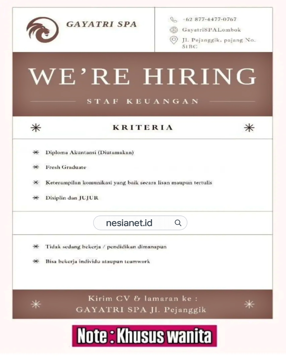 💼 WE'RE HIRING – STAF KEUANGAN 💼